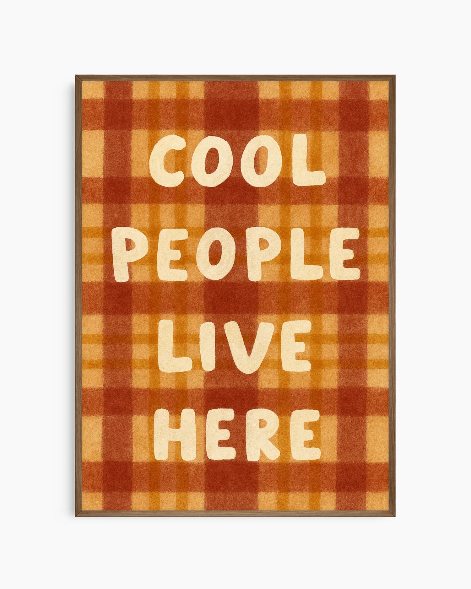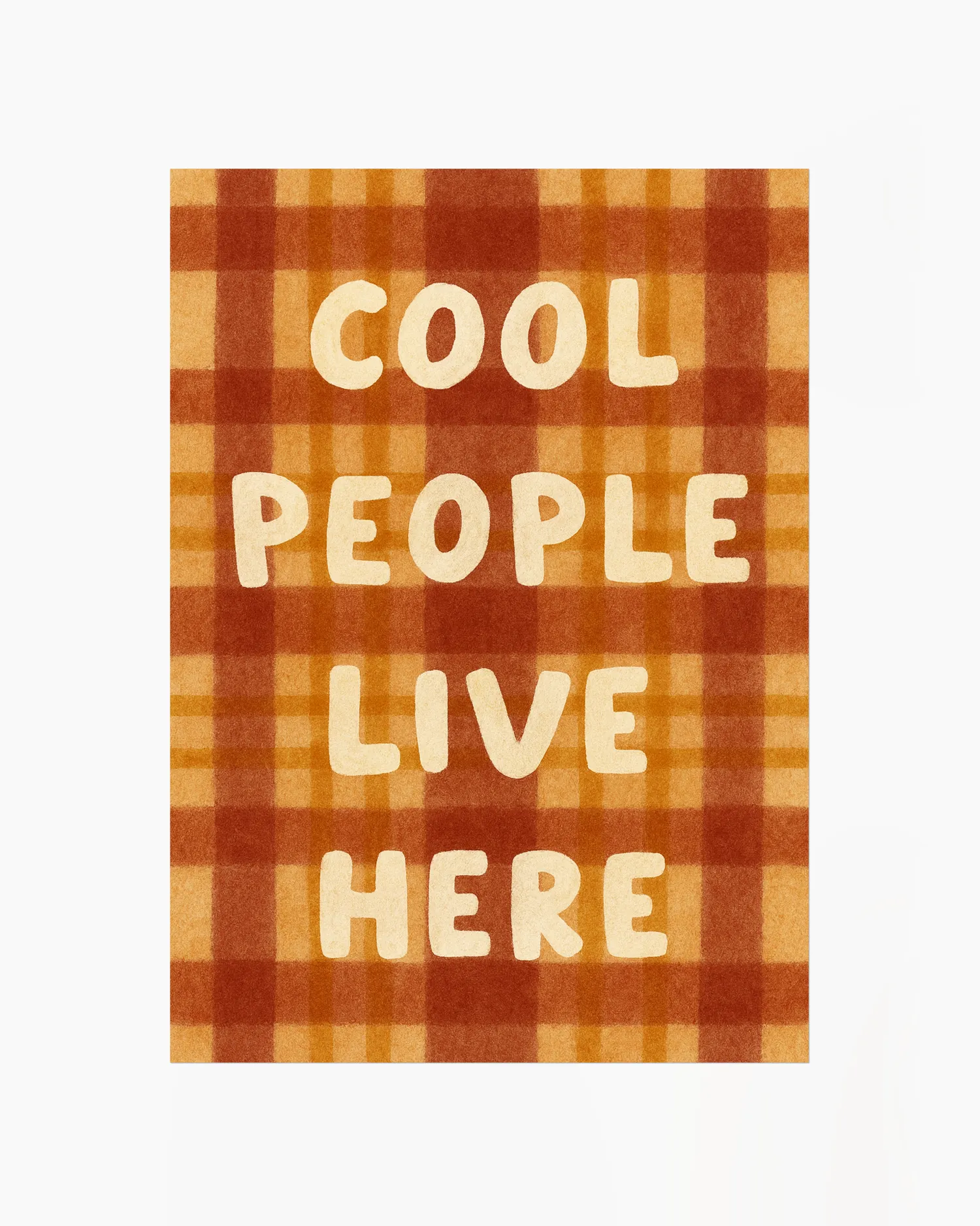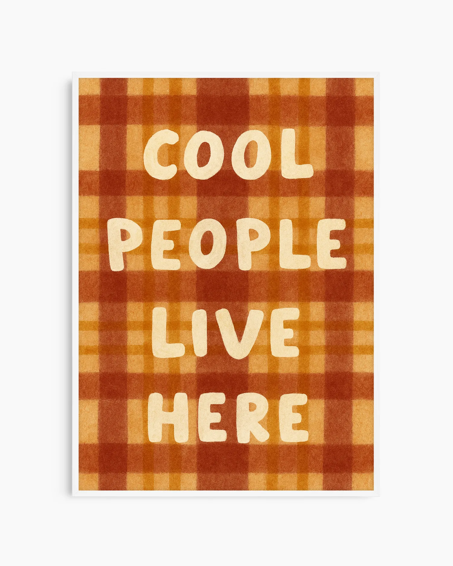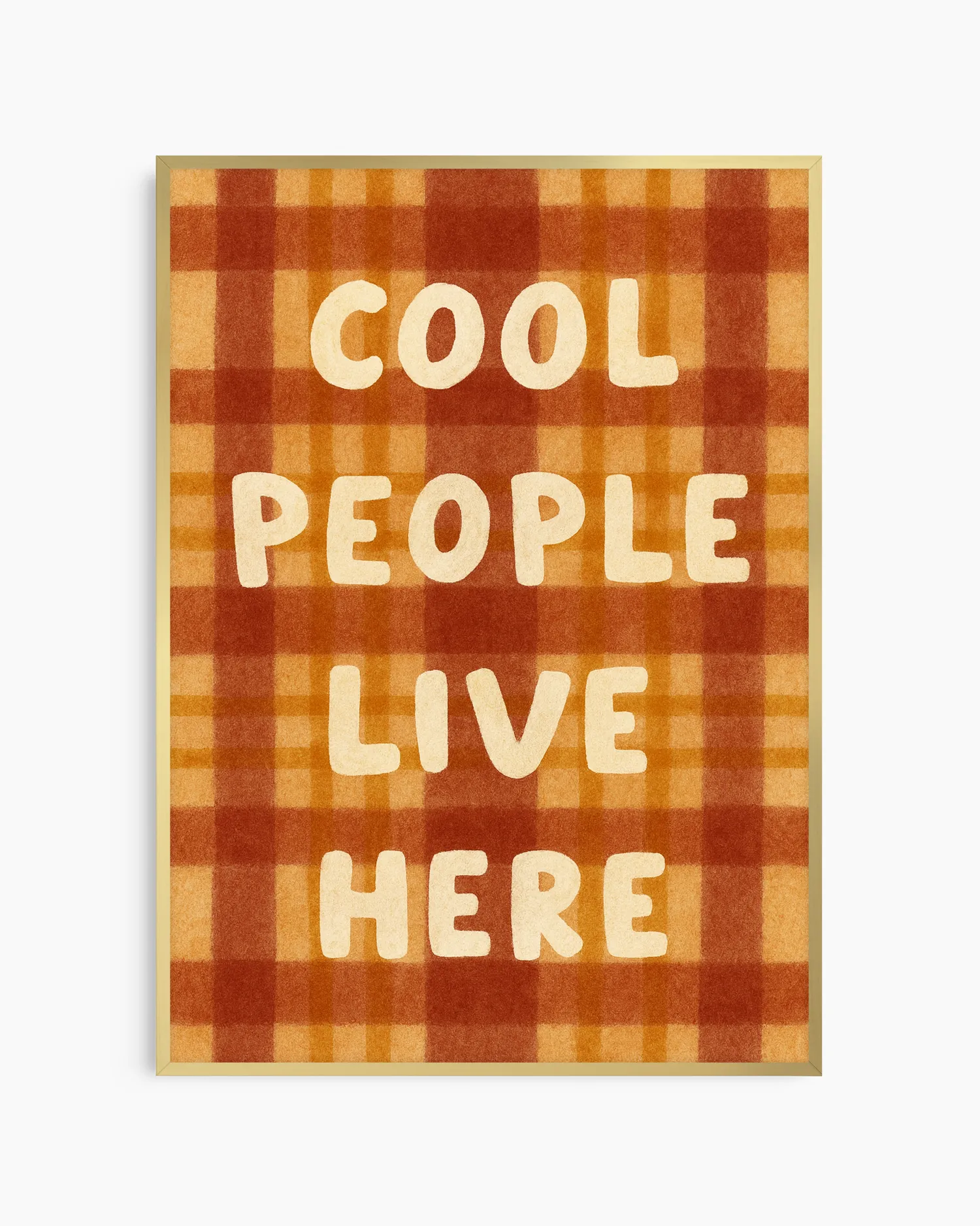 Lämmin, retrohenkinen ruutukuvioitu juliste, jossa on leikkisä viesti ja joka tuo välittömästi persoonallisuutta mihin tahansa huoneeseen.